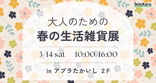 3.14 sat開催大人のための春の生活雑貨展in アプラたかいし2F 3月は出会いとお別れの季節。 新しい生活が始まった...